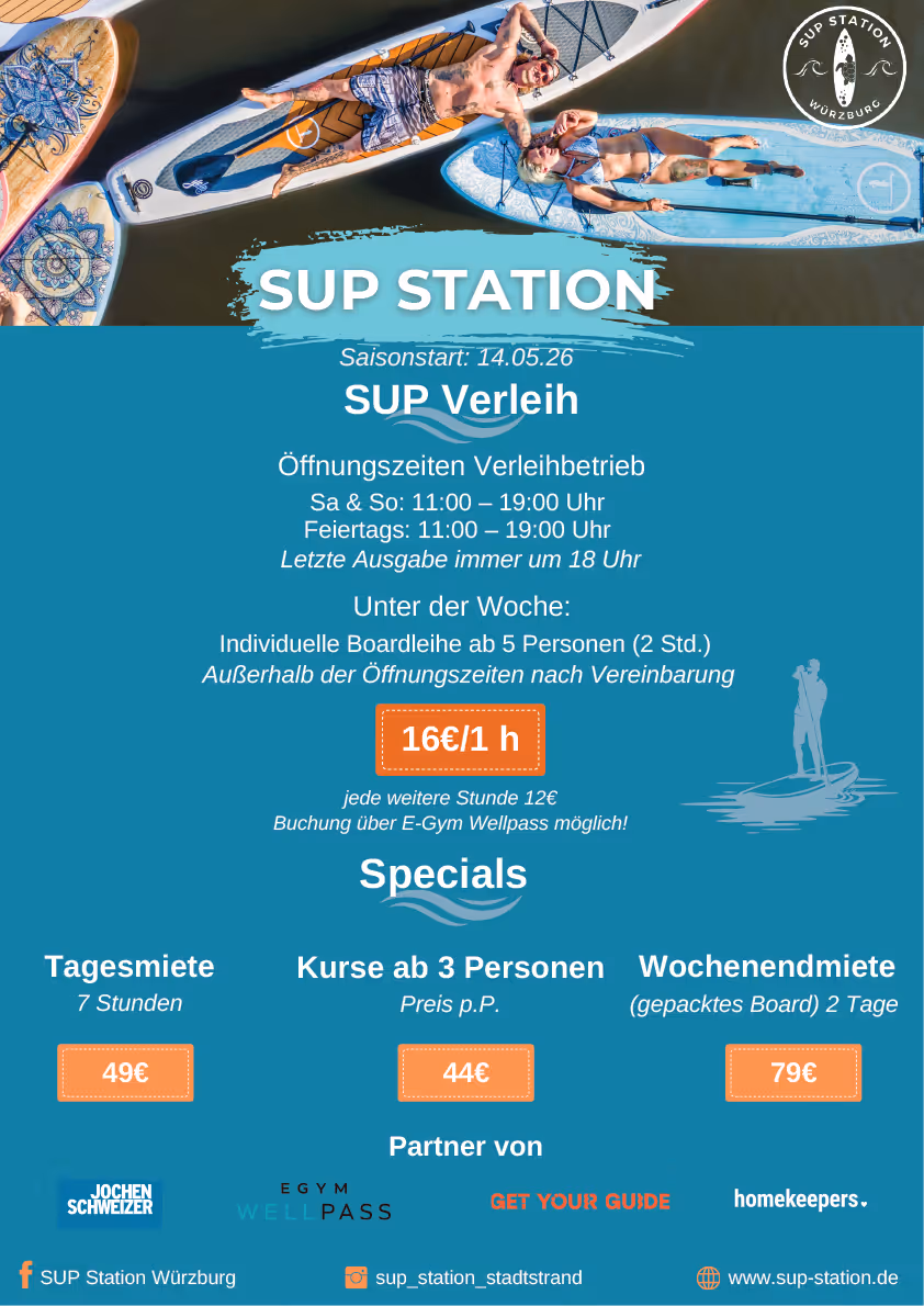 Sport - im speziellen Wassersport - war schon immer meine Leidenschaft. Als Jugendlicher hat mich das Surfen und der große Traum auf Hawaii einmal die Wellen zu reiten schon fest in seinen Bann gezogen. Doch von Deutschland aus ist das Meer verdammt weit weg. Doch SUP (übrigens ursprünglich auf Hawaii entstanden) bietet eine gute Alternative, das "Surfer - Feeling" auch hier zu erleben. Diese Leidenschaft für die Bretter, die die Welt bedeuten, hat mich dazu gebracht, die SUP - Station Würzburg am Stadtstrand zu betreiben.